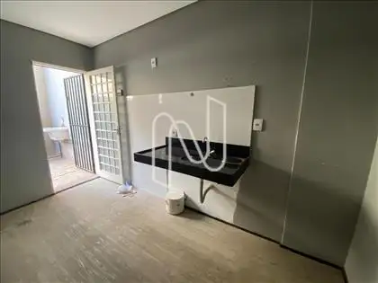 Ampla recepção e mais 3 salas espaçosas, piso vinílico, banheiro, despensa, cozinha grande e área externa com tanque.